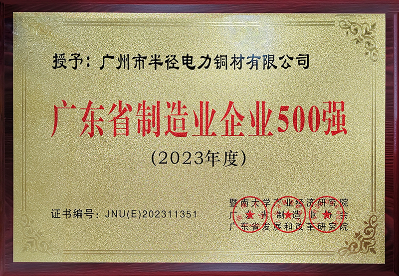 半徑連續(xù)12年榮登“廣東省制造業(yè)500強”榜單